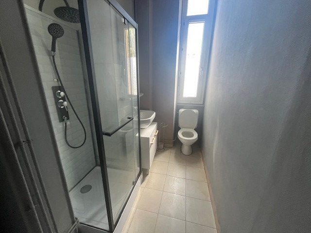 Type 2 rénové dans petite Copropriété.Entrée, séjour avec cuisine ouverte, une chambre, salle de douches/WC.Espaces verts.